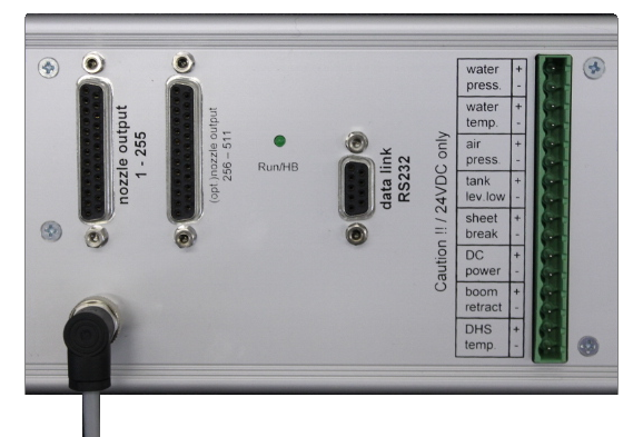 The interface module creates the possibility of controlling classic VIB moisture systems with a serial data link. The module is applicable in standalone mode as well as in connection with an operator station. It supports in standard two datalink versions, which are detected automatically. Additional galvanic separate inputs give the possibility to transmit status information to the QCS system.